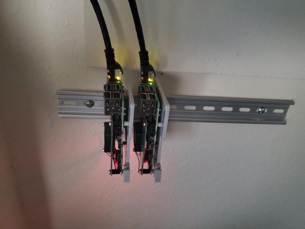 This is not necessarily an exciting write-up. My main purpose is to show how easy this is and offer it as an alternative to typical cases and power supplies. Earlier in A cluster of Pi's, I referenced DIN mounting for the Pi. DIN rails along with the POE hat would reduce the space required, cord clutter, and possibly increase cooling. It has begun...