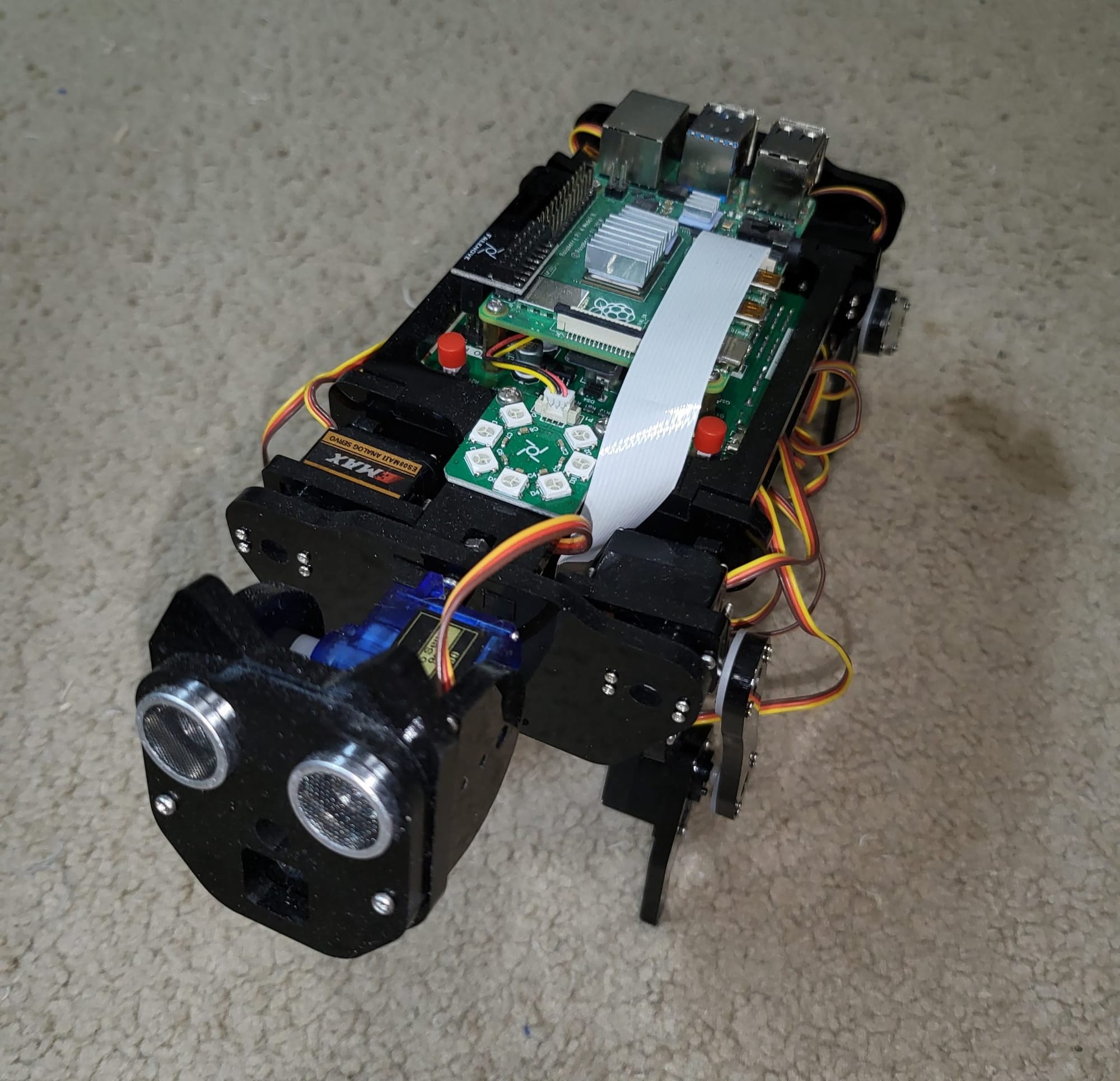 The Robot Dog, that more so resembles a house cat to me, was definitely more of the classic robot than the car. Making all the servos line up and move together to get the different pose positions and walking was a lot of fun and work but I was very pleased in how it all worked out. Until I put in on the carpet. This robot suddenly became a 5 pound paperweight.