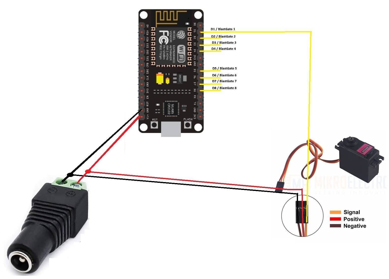 And that's pretty much it! I currently have 4 blast gates configured in my workshop and will likely add at least one more in the near future. My advice if you build this, is to go ahead and overbuild. You may not need all 8 servos or blast gates but if you have the spare wire and connectors, wire them in the controller now so you don't need to take anything apart later. Once installed, you have control over these gates and can create automations such as using a current or power sensor (or outlet) to open the respective gate and turn on the dust collector! How cool is that!?!?