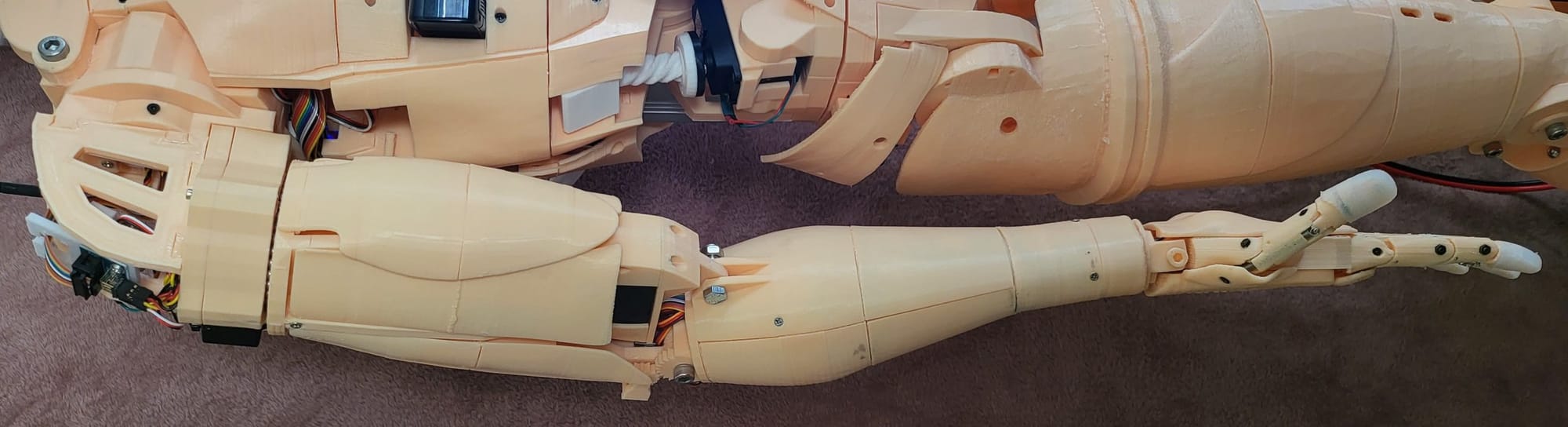 Bob is printed 100% with SUNLU filaments, a combination of Skin/Beige PLA and, after some trial and error, White PETG for the more mechanical prints. Most of the parts are sourced from AliExpress and Amazon although a few items are from local hardware stores and international companies as well. My advice to anyone that builds InMoov or any other large project is to plan out as best you can. I accumulated an enormous amount of surplus parts such as screws, bolts, etc due to reactionary purchasing. For example, I would need a few screws that I had not planned on so I would buy a kit from Amazon for the speediness of delivery. Let's just say this happened about a dozen times (don't judge me) and now I have a plethora of screws, nuts, and bolts. At least I have hardware for my future builds right?
